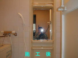 ( 親水コーティングを施す事で、入浴中も鏡の映り込みが鮮やかになります。)