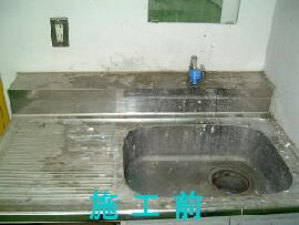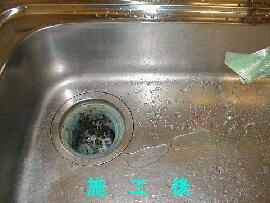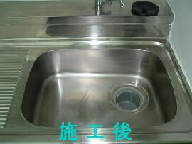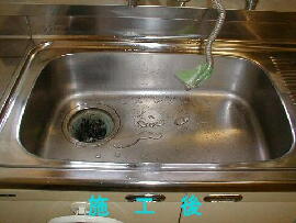 潔感のあるシンクへと復元させ、弊社独自のコーティング加工により、水はじきも写真でご覧